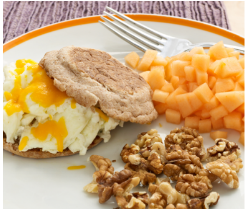 INSTRUÇÕES INGREDIENTES 3 claras de ovo1 colher de sopa de queijo cheddar suaveralado com teor reduzido de gordura1 muffin inglês integral1/2 xícara de melão cantaloupe em cubos2 colheres de sopa de nozesSpray para unta Número de porções: 1Açúcares totais: 8 gCalorias por porção: 344Tempo de preparo: 10 min.Tempo total: 10 min.